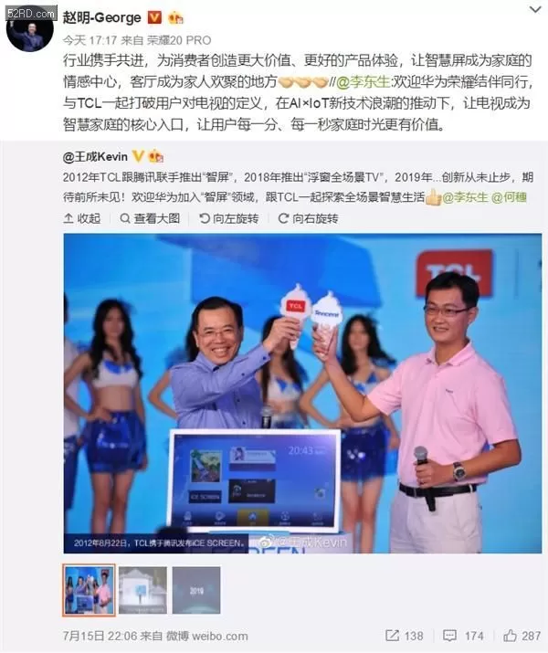 TCL集团董事长李东升也表态:“欢迎华为荣耀结伴同行,与TCL一起打破用户对电视的定义,在AI×IoT新技术浪潮的推动下,让电视成为智慧家庭的核心入口,让用户每一分、每一秒家庭时光更有价值。”