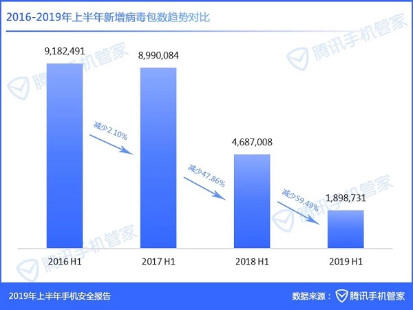(图:2016-2019年上半年新增病毒包数量逐年减少)