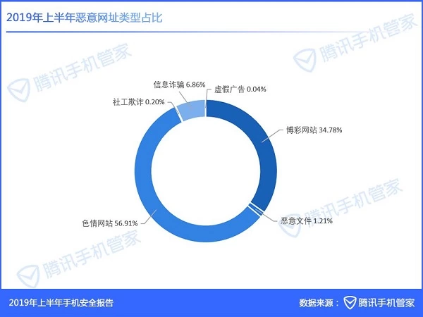 (图:2019上半年恶意网址以色情网站、博彩网站为主)