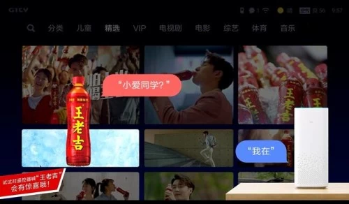 通过小米电视语音遥控器,用户可以实现和大屏电视上的内容实时联动上同样可以实现,小米电视的语音遥控器可以联动屏幕内容,当用户根据小米电视的首页拼图内容说出“王老吉”的口令时,屏幕中即会播放王老吉品牌TVC内容以及品牌霸屏效果。