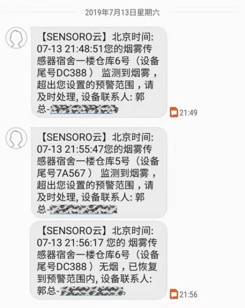 在当晚21点48分左右浓烟升起时,升哲科技自主研发的巴掌大小的物联网传感器感知到烟雾浓度,并用5秒钟的时间将烟雾数据发送到正在汽配厂几公里外的工厂相关负责人的手机上。工厂负责人与安全人员接收到电话和短信通知后,立刻赶往现场。21点56分,这场初起火灾被彻底扑灭。该负责人表示:“我们惊出一身冷汗,还好有这个技术提前报警以及有安全服务人员及时赶到,如果再晚几分钟,后果不堪设想。”
