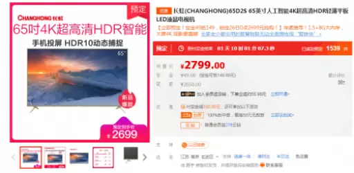 苏宁彩电相关负责人表示,随着产能加大、产品成本下降, 65吋乃至75吋以上彩电的消费门槛会大大降低,像长虹65吋4K人工智能电视价格已经降到了2699元,TCL 65吋4K全面屏电视价格降到了2899元,海信65吋4K人工智能电视降到了2899元。在这样的价格下,消费者完全可以放弃小尺寸,选购一台更大的、视觉效果更好的、甚至可以实现人工智能互动的产品。