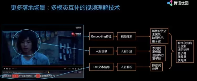 我们还做了很多事情,比如我们在腾讯视频里,在腾讯整个内容平台上做了非常多交叉融合,在落地上也做了非常多。比如我们通过视频内容、图像内容、标题内容得到非常多的精准理解。