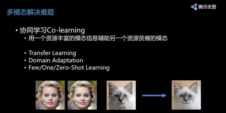 多模态里有非常多的问题,所以我们引入了非常多的其他方法,transfer learning、domain adaptation、few/one/zero-shot learning 等方法都是比较好的研究方向。