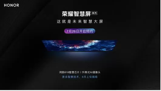 在主题演讲中,赵明还宣布,荣耀智慧屏将会从即日起在Vmall、京东、天猫、荣耀亲选接受预约。如之前新品类发布会介绍,荣耀智慧屏的正式亮相会在8月上旬,它所拥有的更多智慧技术也将在届时揭晓,让我们一同见证荣耀智慧屏开启电视行业智慧时代。