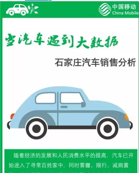 大数据分析,让选择不再"纠结"。最近,石家庄的小王要买车了,这本是好事,然而面临着海量的信息,小王早已一个头变成了两个大,安全、车厢、价格、环保……各类标签让他选来选去也拿不定主意!而河北移动推出的《当汽车遇到大数据-石家庄汽车销售分析》则帮了他的忙。利用大数据的精准分类,通过对石家庄区域汽车的销量趋势、汽车园区排名、不同人群喜好等不同内容进行分析,为人们的选择提供了决策依据,也顺利治好了小王的"选择障碍症"。
