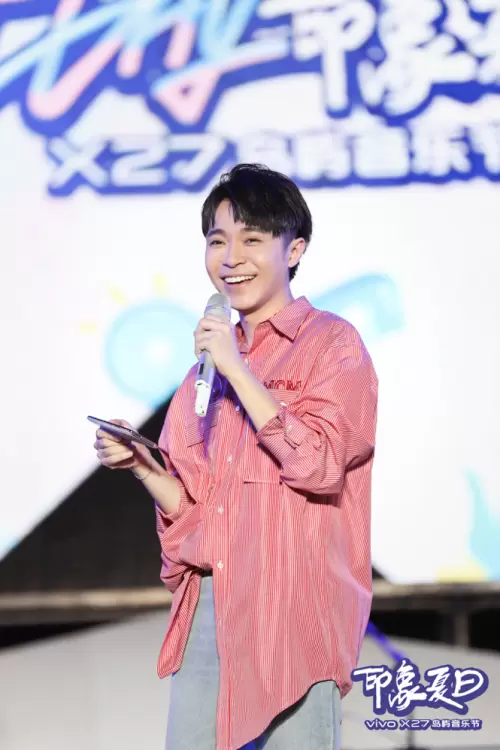 何炅、吴青峰与赵典手持X27印象夏日台上互动