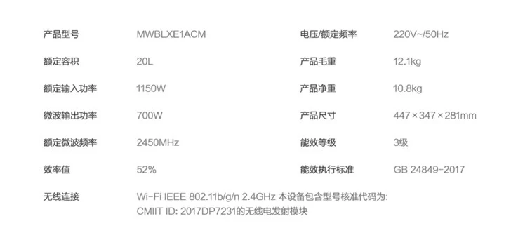 据介绍,米家微波炉支持语音操控,平板速热和专项分类解冻,容量为20L。米家微波炉还内置了WiFi模块,可用小爱同学进行语音远程控制,还可在App进行查看云食谱以及设置火力和功能。