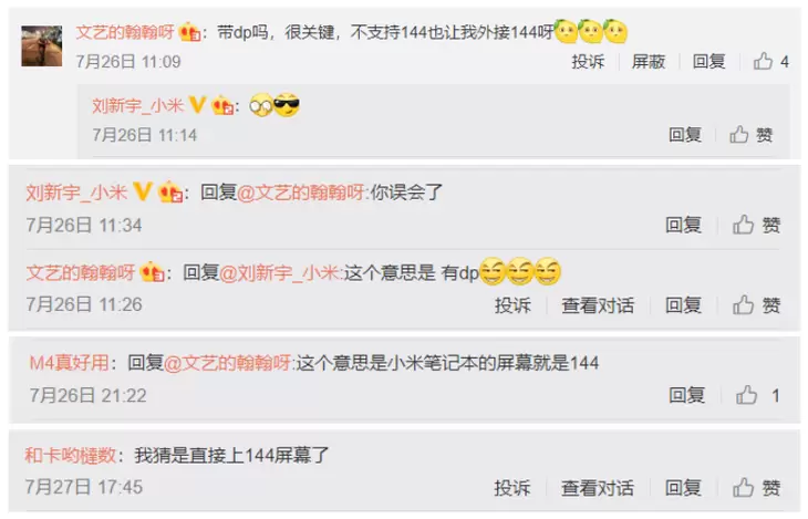 从图上看,这款游戏本所采用的模具应该和上一代基本相同,不过有网友在询问这款游戏本是否搭载DP接口时,刘新宇并没有直接回答,并似乎是间接否认了DP接口的存在,有网友猜测新款小米游戏本将配备144Hz刷新率的屏幕。上一代小米游戏本采用的是1080P的IPS屏幕,这次也应该会对显示屏进行升级换代,144Hz的电竞显示屏就是目前比较主流的选择。