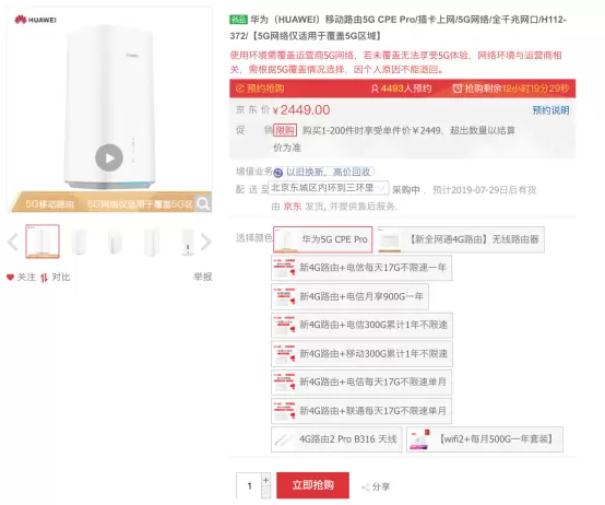 目前,华为5G CPE Pro已经登陆华为官方商城VMALL、京东商城、天猫等电商平台正式开售,不妨马上来抢购一台吧。此外,正值京东智能网络巅峰24小时活动进行中,现在购买华为4G 路由2 Pro不仅享受下单立减30元还更可获赠一对增强天线,让信号接收及覆盖更好更稳定。