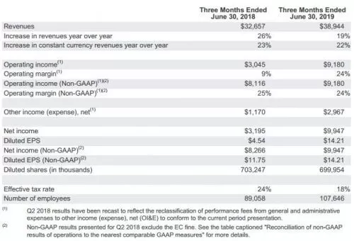 该公司的营收为389.44亿美元,较去年同期的362.57亿美元,同比增长19%;如果按照固定汇率计算同比增长22%