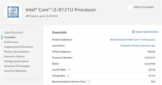 Intel就这么低调地公布了首款10nm处理器,型号i3-8121U。