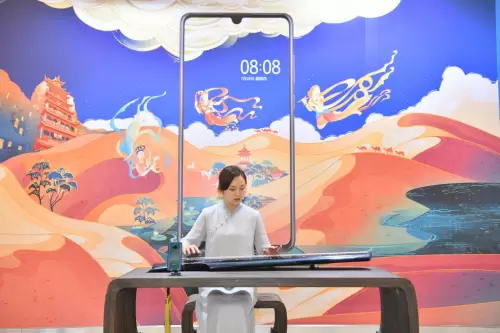 除了视觉上的古风与潮酷科技碰撞外,在此次实验室内还能聆听到华为Mate 20 Pro运用AI科技重构的《春江花月夜》古曲的悠扬,不仅通过活动现场大屏幕展示,还在一幅极具艺术气息的敦煌壁画前由古琴演奏家现场演奏,让现场观众近距离欣赏到艺术瑰宝的隽永。