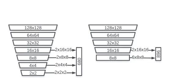 通常的做法是根据目标比例范围在多个分辨率级别定义锚点,同时下采样也是计算资源优化的手段。典型的 SSD 模型使用 1×1,2×2,4×4,8×8 和 16×16 特征映射大小的预测。然而,金字塔池化网络 PPN 架构(https://arxiv.org/pdf/1807.03284.pdf)的成功意味着在特征图达到某个特征映射分辨率后,将产生大量额外的计算。