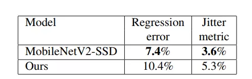 我们通过连续输入目标轻微偏移的图像来量化抖动量,并观察模型结果(受偏移量影响)如何受到影响。在联合分辨率策略修改之后,抖动量(定义为原始输入和移位输入的预测之间的均方根差)在我们的前置摄像头数据集上下降了 40%,在包含较小人脸的后置摄像头数据集上下降了 30%。