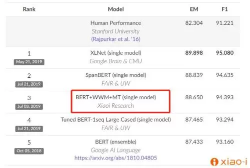 小i机器人SQuAD1.1榜单全球第三 机器阅读理解能力上新高度