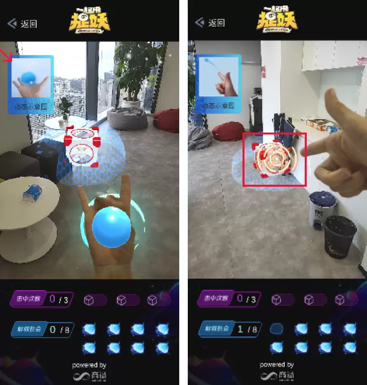 除此之外,商汤科技与腾讯合作的AR探索手游《一起来捉妖》的新玩法互动体验演示,结合了RGBDSLAM、三维重建、动静态手势识别等创新技术,让玩家可以通过多种手势召唤和捕捉游戏中的“小妖灵”,并与之互动。不仅如此,商汤科技自主研发的AR互动体验游戏《黑羊守护者》则基于商汤SenseARCloud云平台,实现多终端设备的同时互动操作。