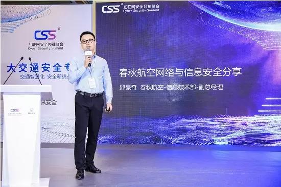 (图:春秋航空信息技术部邱豪奇分享网络安全建设理念)