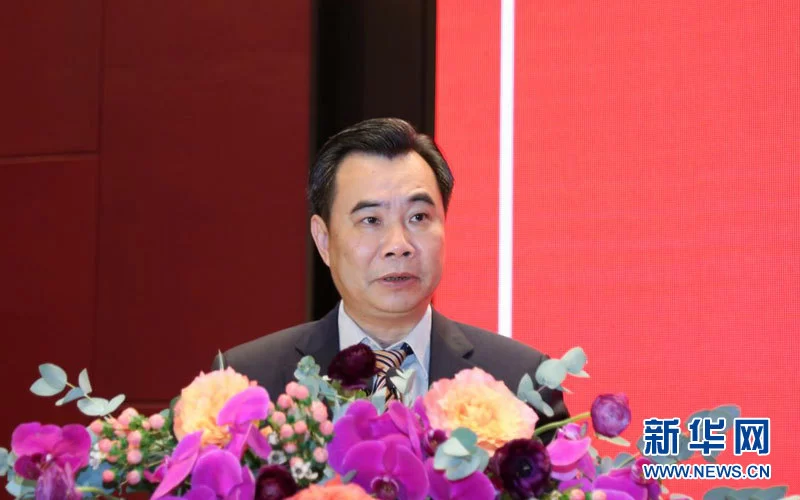 康美药业董事长、总裁马兴田在仪式上讲话。新华网发
