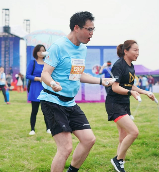 【图为参赛市民体验蓝牙跳绳】