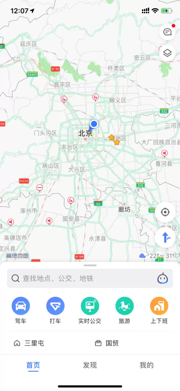产品架构更清晰。V10.0新版的整体信息架构调整为:首页、发现、我的。“首页”主要帮助用户更快地完成“我在哪”、“怎么去”、“用工具”等一系列出行服务;“发现”帮助用户探索基于地理位置的兴趣点,解决的是“去哪儿”的问题。