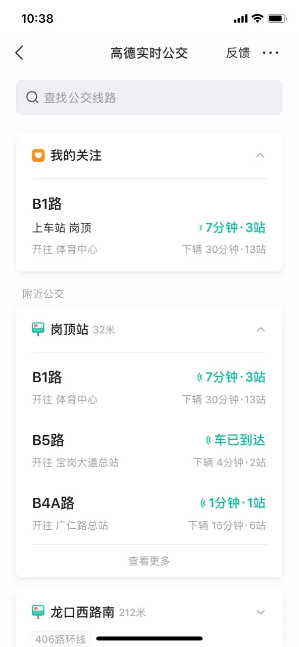 图注:高德地图实时公交可提供精准的公交车到站时间