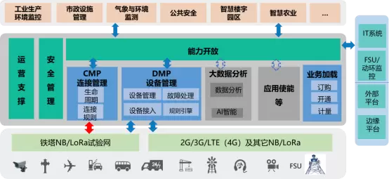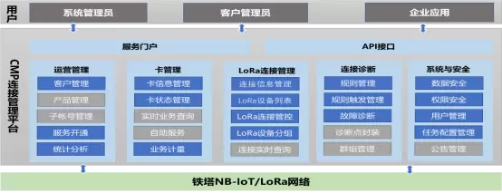 CMP连接管理子平台:作为一个基础性子平台,在物联网业务整体架构中起到承上启下的作用,面向中国铁塔NB-IoT/LoRa试验网提供物联网卡基础管理能力,面向企业客户提供自助式服务,将物联网连接管理能力开放给产业上下游伙伴,为物联网产业发展提供基础支撑能力,推动物联网业务发展。