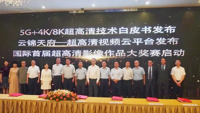 2019年8月6日,四川5G+4K/8K超高清视频产业大会在成都影视硅谷超高清影视基地召开。大会发布了《5G+4K/8K超高清技术白皮书》和云锦天府——超高清视频云平台,启动了国际首届超高清影像作品大奖赛,并由多家单位联合发起成立四川超高清产业研究院。夏普作为8K行业的先行者,携手中国电信等国内一流企业,共同见证国内首个5G+8K技术标准白皮书,为8K行业良性发展注入动力。