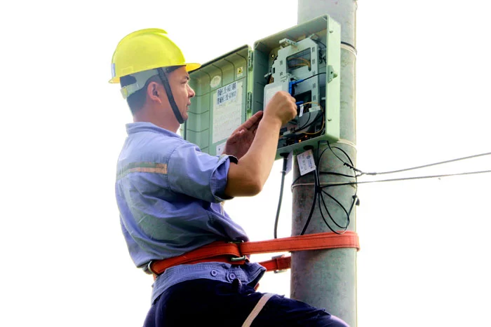 在湖北宜昌,湖北移动施工人员正冒着酷暑为农村用户安装宽带