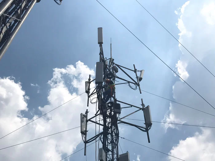 烈日下,网络人员爬上滚烫的铁塔