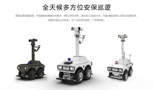 现今应用较为广泛的,当属安保巡逻机器人。这是一种可以在预先设定好的路径上自主行走,并在指定的地点停留执行查看、检测等任务,发现异常情况及时自动报警的机器人。巡逻机器人有效解决了传统安防系统中,由于位置固定,存在摄像头死角,有效视距狭窄等问题,能够实现自主导航、主动避障、全方位、无死角实时监控。