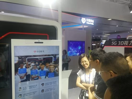 人脸识别AI荐书是云天励飞近期推出的一款AI产品,在今年7月的深圳书展一亮相就受到好评,目前已在深圳书城龙岗城上线应用。在本次5G体验周上,这款产品也受到热捧,现场游客纷纷驻足体验。