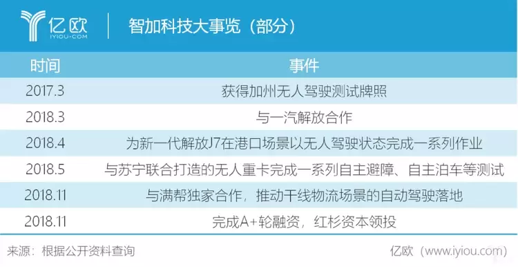 2016年创立于硅谷的智加科技,创始团队带有浓厚的斯坦福背景,聚合了一支全球一流工程师研发团队,目前已经在苏州、北京、上海设立了研发中心,专注L4级“仓到仓”场景的无人重卡技术研发和干线物流的场景落地推进。下图是智加科技成立至今大事览。