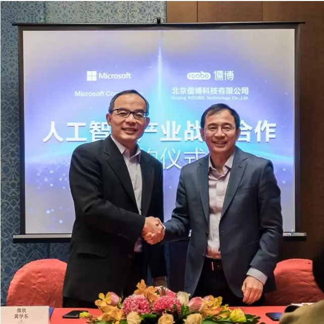 微软技术院士、微软云及人工智能事业部黄学东博士(左)与儒博(Roobo)董事长熊明华(右)