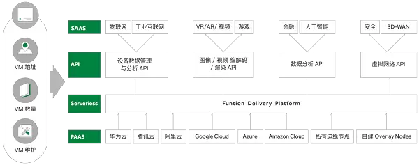 面对巨大的市场空间,各大厂商纷纷发力边缘计算。传统的边缘计算厂商利用中心云对基础设施和资源进行统一纳管,将云端的计算能力下发到终端设备的边缘节点,满足用户实时数据处理、分析决策等需求。但由于用户需自行配备服务器资源,在解决计算需求的同时也造成沉重的开发、运维和管理负担。例如在工厂智慧化建设中,工厂需提前购买边缘服务器节点,并耗费大量的时间与精力开发部署运行环境。当工厂需要设备升级计算能力时,需要另外重新购买叠加计算资源,易造成资金的浪费。
