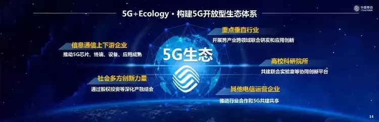 今年6月,中国移动发布了5G+计划,其中5G+AICDE融合创新成为关键引擎,即5G作为接入方式,和人工智能(AI)、物联网(IoT)、云计算(CloudComputing)、大数据(BigData)、边缘计算(EdgeComputing)等新兴信息技术深度融合,为智慧城市等行业应用建设构建安全、高效、智能的信息通信基础设施,实现大数据分析和设备统一管理,推进行业规范化和标准化。与生态合作伙伴共同开展商业模式创新、价值创造,构建可持续、合作共赢、可信的生态系统,充分发挥5G+Ecology乘数效应,加速推动5G在更广范围、更多领域的应用,助力行业创新升级发展。