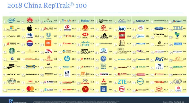 全球企业在华声望排行榜出炉 华为击败苹果居第二位