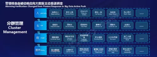 依托海量数据,对驾驶人、机动车、道路进行多维度数据刻画和打标签,制定主题鲜明的主题分群,例如:驾驶人主题:违停达人、新手上路、买卖分族、飙车一族、晒娃达人、文明达人、醉猫一族等;机动车主题:酒驾车、毒驾车、碰碰车、夜行车、通勤车、网约车等;道路主题:进出城路、进山路、上班路、旅游路、就医路、购物路。