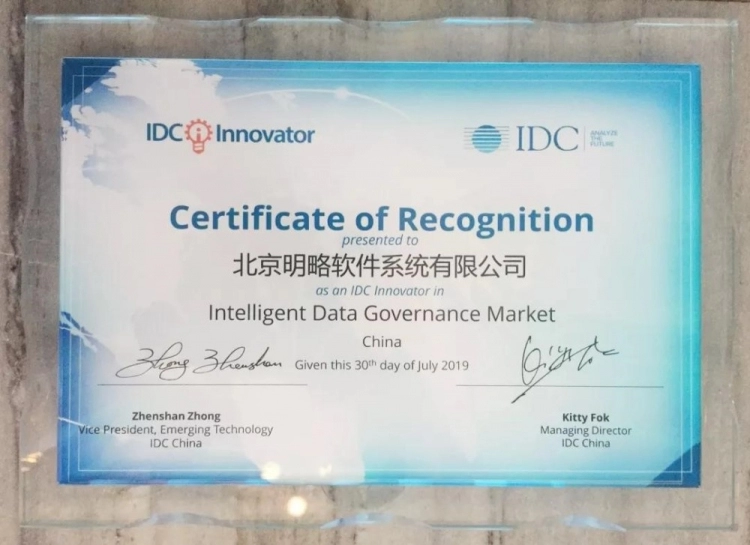 2019年8月13日,IDC Innovator科技创新沙龙在京举行。IDC Innovator计划自2017年推出以来,旨在发现细分市场中提供新技术、新方案、新模式的创新性企业。明略数据,现已品牌升级为明略科技集团,凭借其智能化数据治理技术和应用落地实力,被评为2019 IDC Innovator。