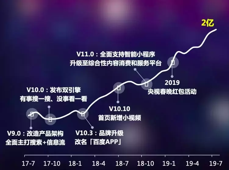 2017年百度App10.0开不再定位于移动搜索App,而是形成搜索+信息流双引擎架构,接着基于百家号和小程序两大枢纽,整合内部矩阵App和外部生态资源,实现内容与服务的闭环。在新定位的基础上,产品功能的迭代方向对了,进而具备增长的基础,接下来关键就是在对的市场抓住对的窗口期,落地执行,于是有了百家号对200万作者的各种运营策略,有了春晚营销这样的大手笔。