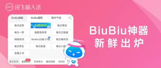 这一次,讯飞输入法从功能迭代、内容输出、创新探索等层面不断洞察用户需求,打造更高颜值的自定义皮肤、兼具“言值”和效率的BiuBiu神器,让用户体验再获升级!