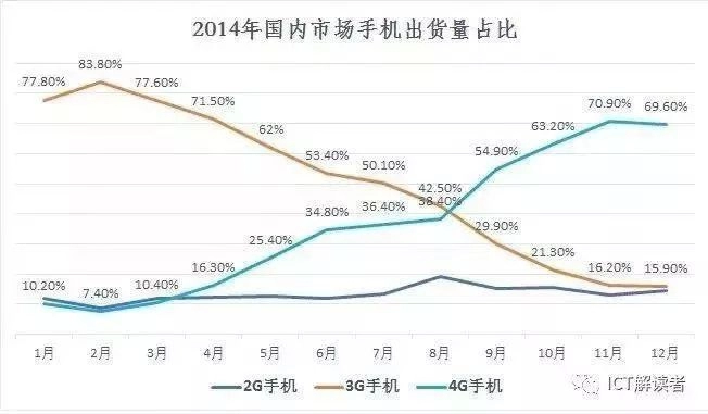 参照下图所示4G牌照发放后2014年间的3G和4G手机出货量占比变化情况,可以预见在5G牌照发放后,从2019年下半年到2020年下半年的18个月区间内,4G手机销量的大幅下滑与5G手机销量的缓慢爬升将带给手机终端厂商最冷一段时间凛冬的预警将不是空穴来风。