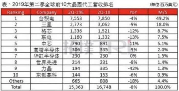 在晶圆体代工生产方面,台积电可以硕士当之无愧的市场一哥。根据今年第二季度全球前十晶圆体代工企业收入排名来看,台积电几乎都是以一己之力扛起代工市场的半壁江山,市场占有率达到49.2%。比第二名到第十名的总和还要多,更重要的是台积电技术是垄断整个高端市场,5G订单量一骑绝尘。