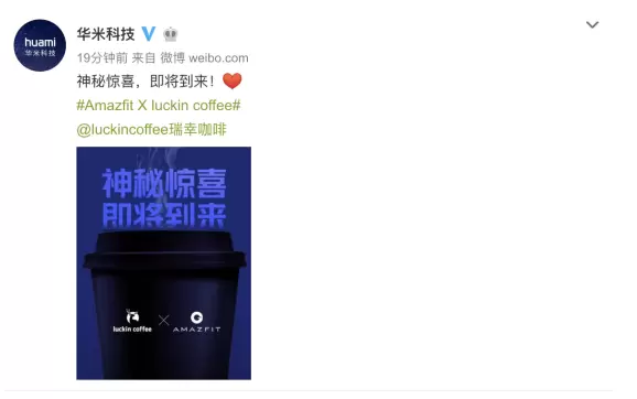 (华米科技官宣与瑞幸咖啡达成合作)