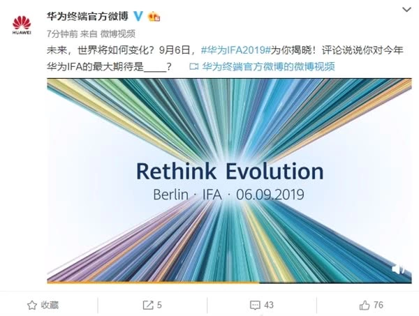 8月20日消息,华为终端官方微博正式宣布,9月6日举行的IFA大会上,他们会有大动作,从预告来看,应该是新一代麒麟处理器(旗舰)的发布。