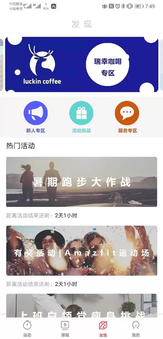 正当大家纷纷猜测的时候,微博上有网友爆料称自己收到了Amazfit APP内测的更新,在更新后的Amazfit APP上看到了“瑞幸咖啡专区”,并且点进去后还出现了“用运动数据兑换咖啡”的入口。