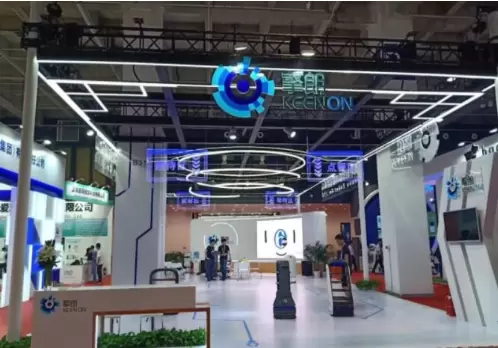 B馆313展位,室内无人配送机器人头部企业KEENON新产品和新技术持续火热展示,人头攒动,摩肩接踵。