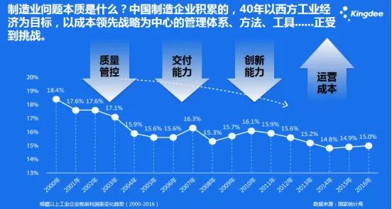 金蝶认为云大物移等新技术和消费者的变化带来制造企业由大批量生产到个性化的柔性制造是一种新的趋势。这种趋势已经从2c市场往产业链的上游发展。我们金蝶不仅关注制造企业的智能制造,也关注理解销售端的变化。理解商业环境的变化是制造企业下定决心进行智能制造的动力。