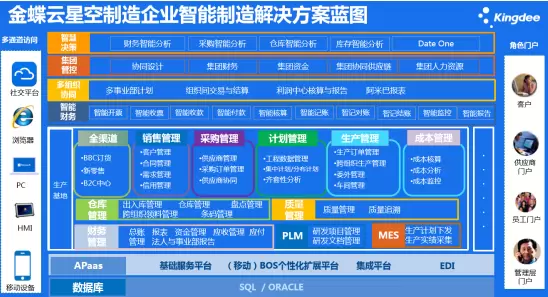 金蝶云·星空以20余年制造企业ERP供应商的经验,形成国内目前唯一集PLM+ERP+MES于一体的云管理信息系统,突破传统金字塔IT、OT架构,构建以MES云平台的PaaS等全要素云端的新一代数字化架构。和华为云ROMA集成平台、中和注塑云等生态合作伙伴一起为广大制造企业提供“用的起、用的好”的智能制造解决方案。