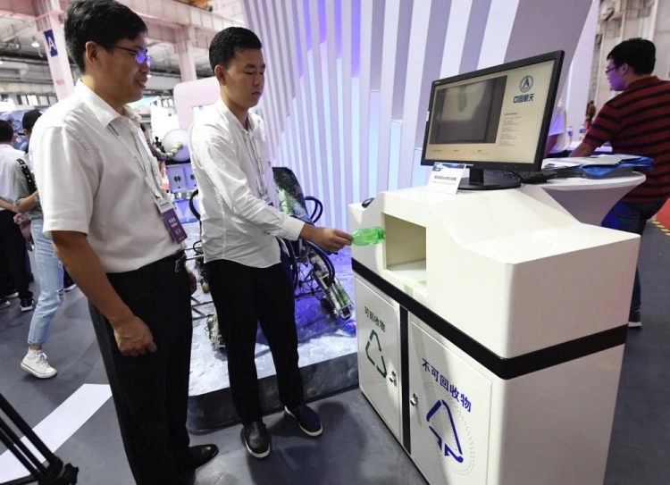 自动分类垃圾桶亮相机器人大会,0.2秒识别出垃圾种类
